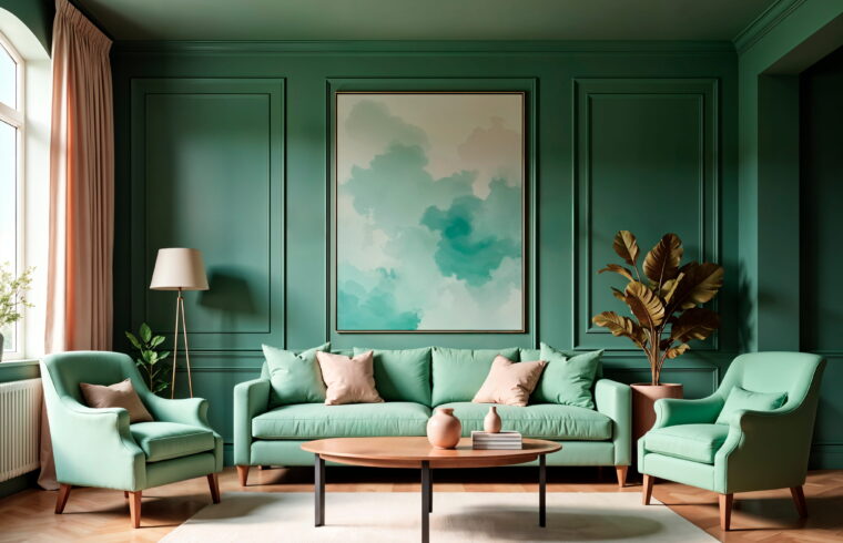 O altă direcție importantă este utilizarea paletelor monocrome, construite prin suprapunerea mai multor tonuri din aceeași familie cromatică. Această abordare permite o lectură sofisticată a spațiului și pune în valoare detaliile arhitecturale, materialele și jocul de lumină. Culori precum Aqua Smoke sau Smoky Slate funcționează foarte bine în acest registru, mai ales în interioare contemporane unde forma și proporția sunt esențiale.