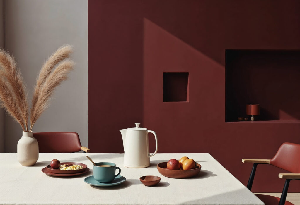 Culoarea Anului 2026 este Warm Mahogany, un roșu profund, matur, cu subtonuri pământii. Este o nuanță care atrage atenția fără a deveni stridentă și care poate funcționa atât ca accent puternic, cât și ca fundal sofisticat. Calitatea sa „clasică” o face adaptabilă în contexte diverse: de la interioare contemporane minimaliste, unde poate introduce căldură și gravitate, până la spații cu referințe istorice sau art deco, unde completează natural materialele precum lemnul închis, metalul patinat sau piatra.
